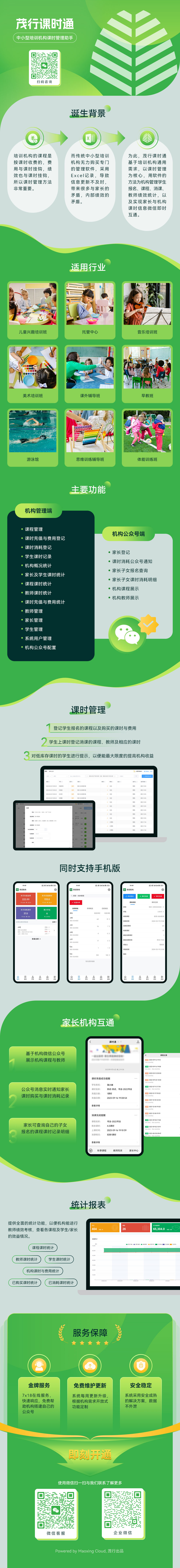 茂行课时通是成都茂行科技有限公司旗下主要产品,为教育培训机构开展裂变和报名活动,并提供课时记录管理服务、让机构和家长随时了解学生的课时情况。